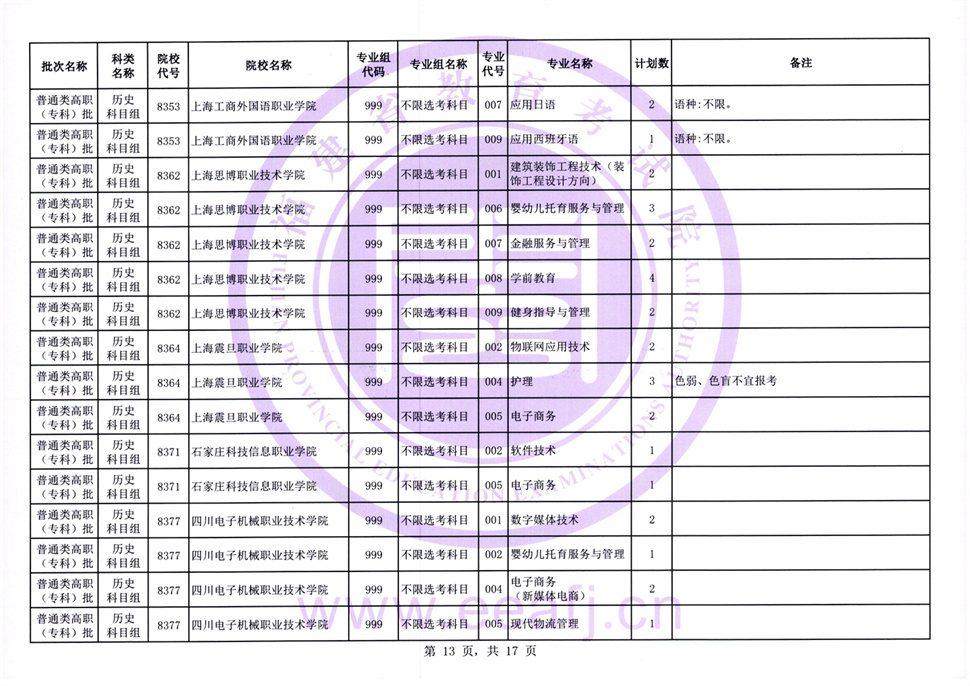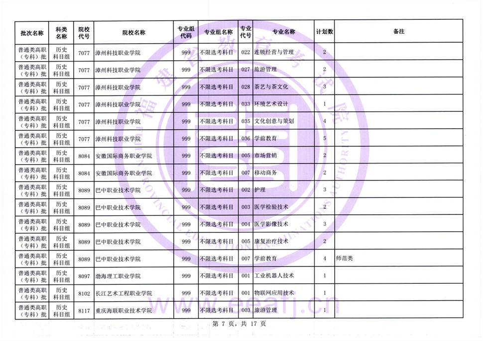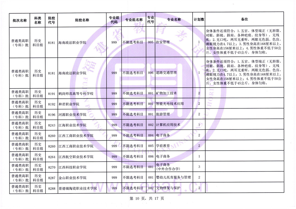 今年我省普通类高职(专科)批历史科目组仍有缺额计划须进行征求志愿(具体附后)。请考生在填报征求志愿时注意以下事项: