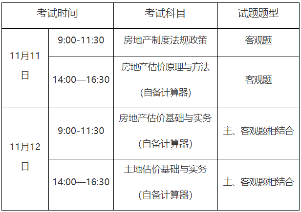 房地产估价师资格考试设《房地产制度法规政策》、《房地产估价原理与方法》、《房地产估价基础与实务》、《土地估价基础与实务》4个科目,所有考试科目均采用闭卷、纸笔考试。其中,《房地产制度法规政策》《房地产估价原理与方法》2个科目均为客观题,以填涂答题卡的方式作答;《房地产估价基础与实务》《土地估价基础与实务》2个科目为主客题相结合,以填涂答题卡和在答题纸上书写2种方式作答。