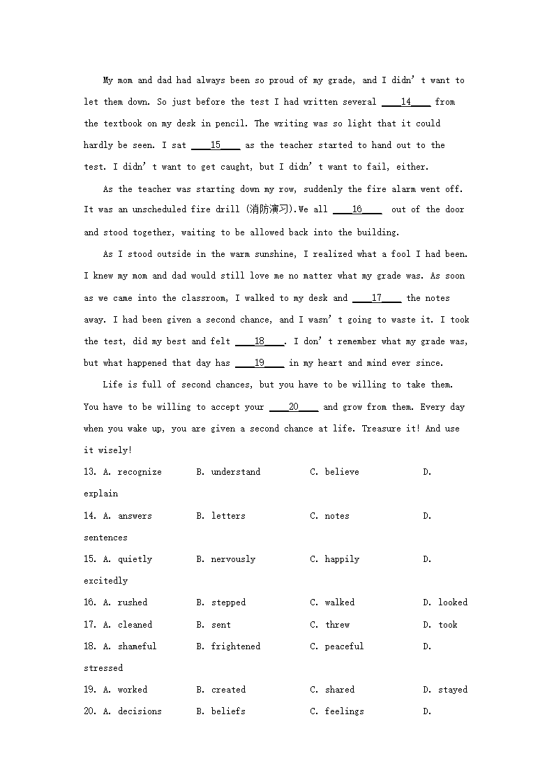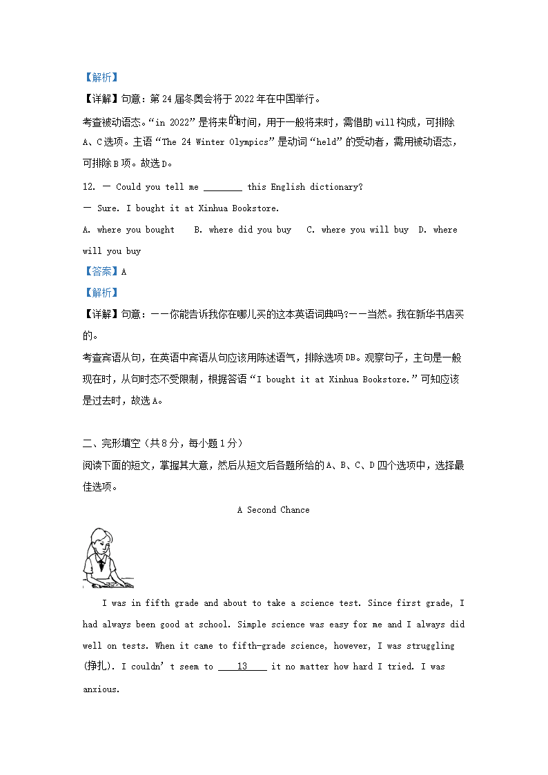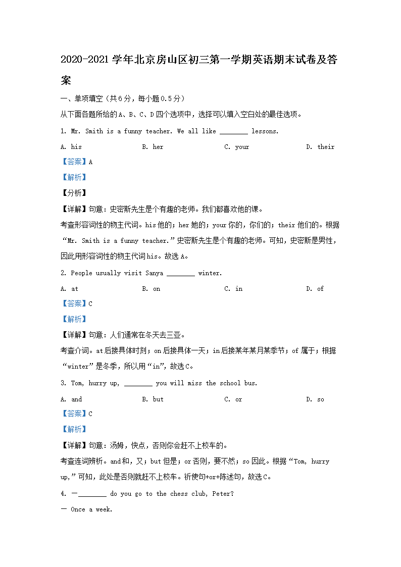 2020-2021学年北京房山区初三第一学期英语期末试卷及答案(Word版)08-10