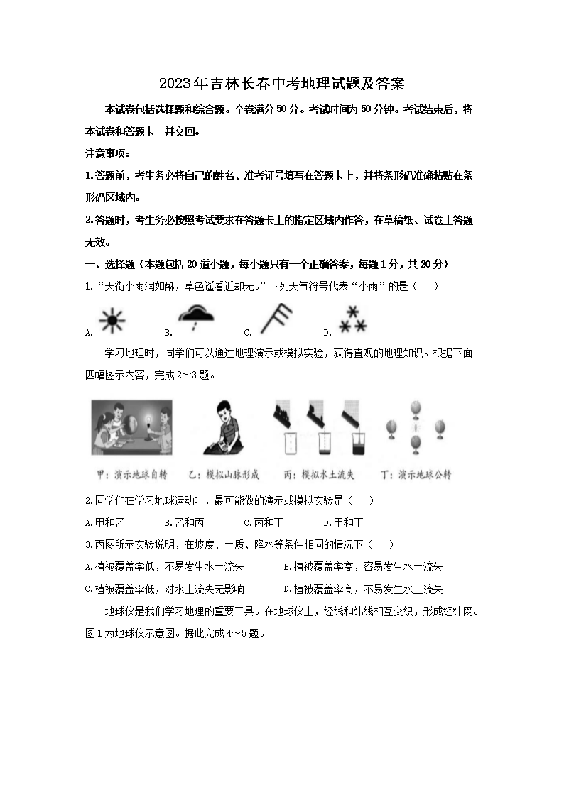 2023年吉林长春中考地理试题及答案(Word版)07-06