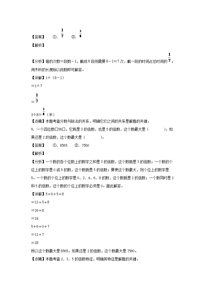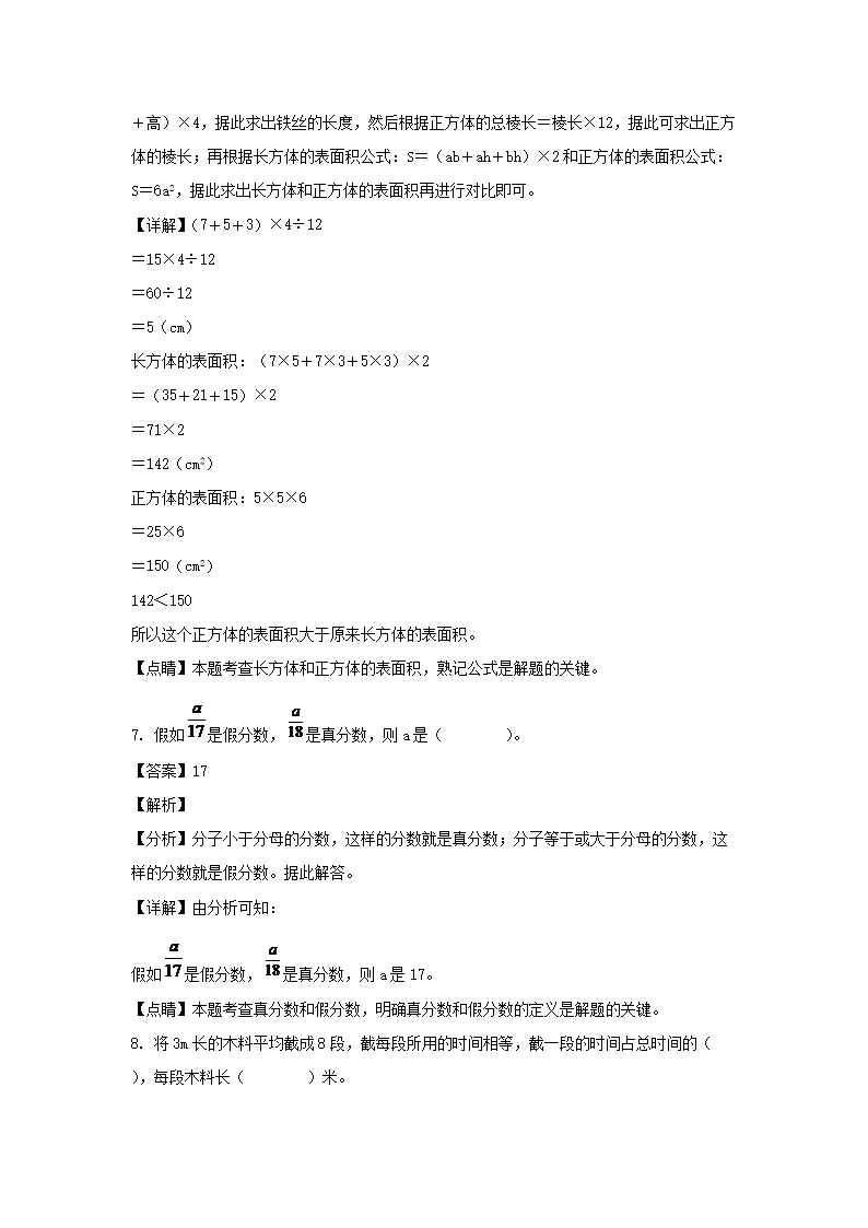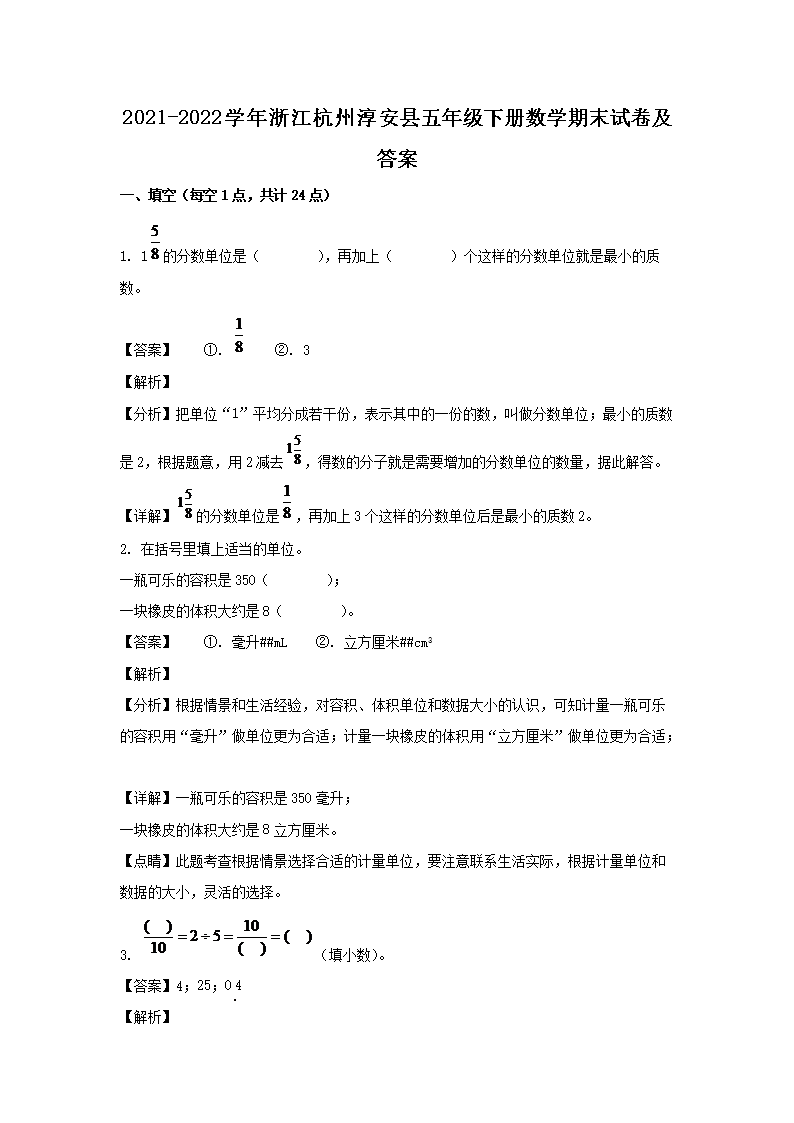 2021-2022学年浙江杭州淳安县五年级下册数学期末试卷及答案(Word版)09-26