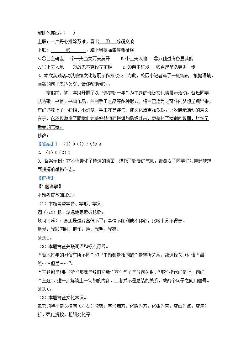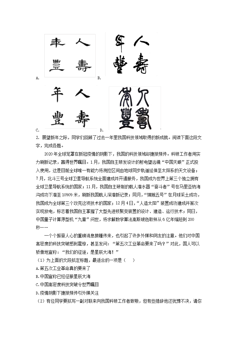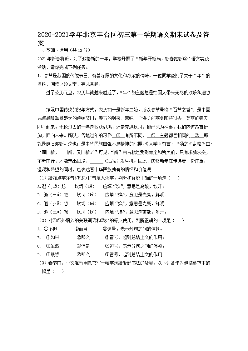 2020-2021学年北京丰台区初三第一学期语文期末试卷及答案(Word版)07-15
