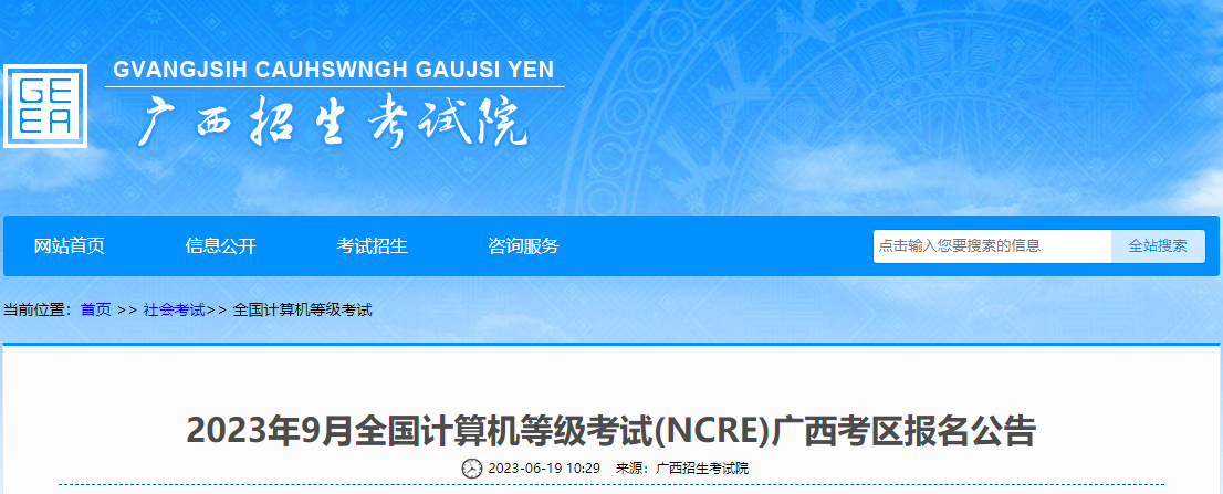 原文标题:2023年9月全国计算机等级考试(NCRE)广西考区报名公告