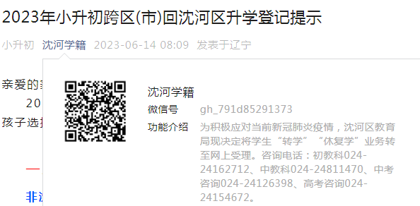 2023年小升初跨区(市)回辽宁沈阳沈河区升学登记提示(登记时间6月15日至21日)06-16