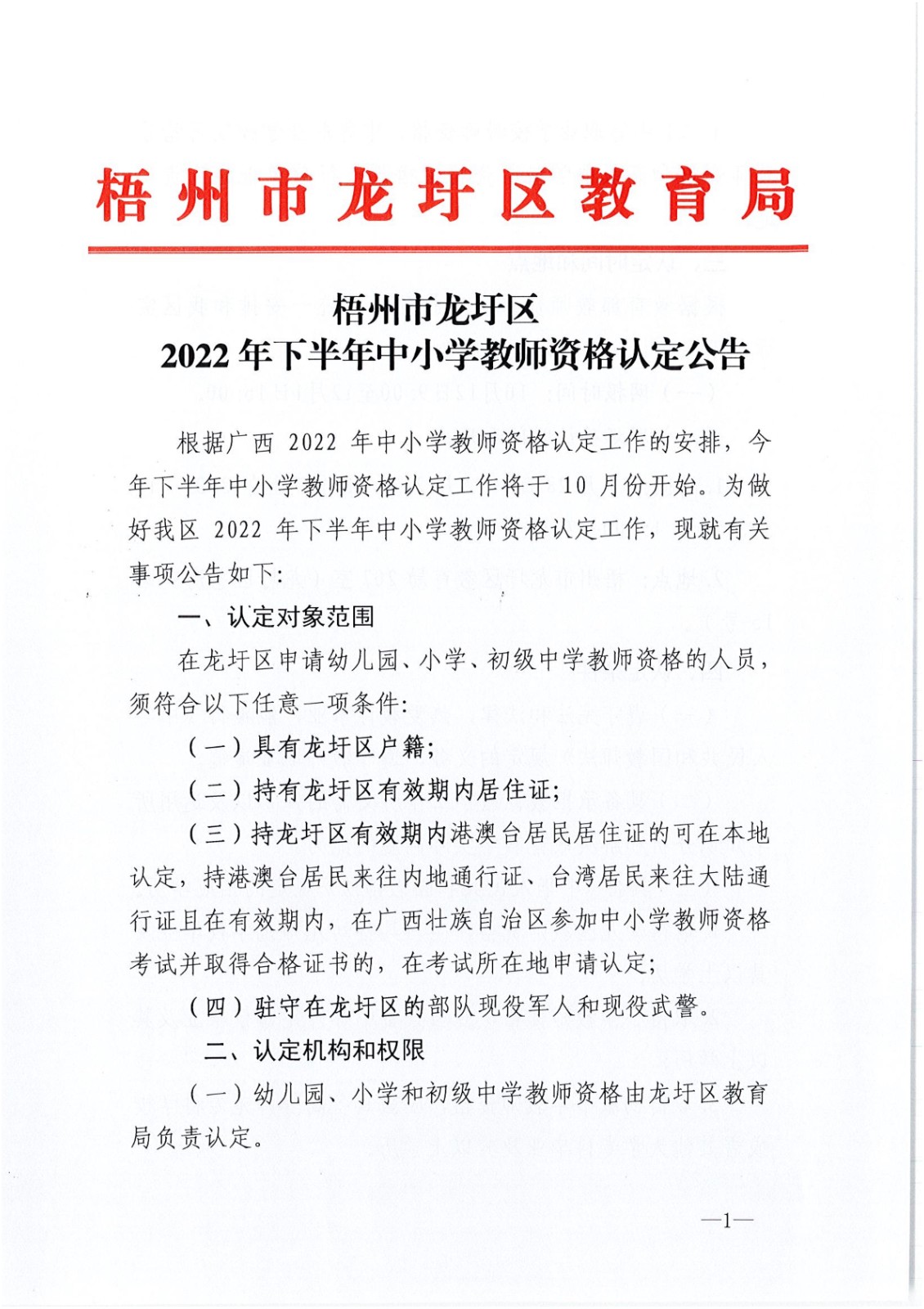 【#教师资格证# 导语】©文档大全网从广西梧州市教育局获悉,广西梧州龙圩区2022年下半年中小学教师认定公告已公布,请相关人员仔细阅读,具体详情如下: