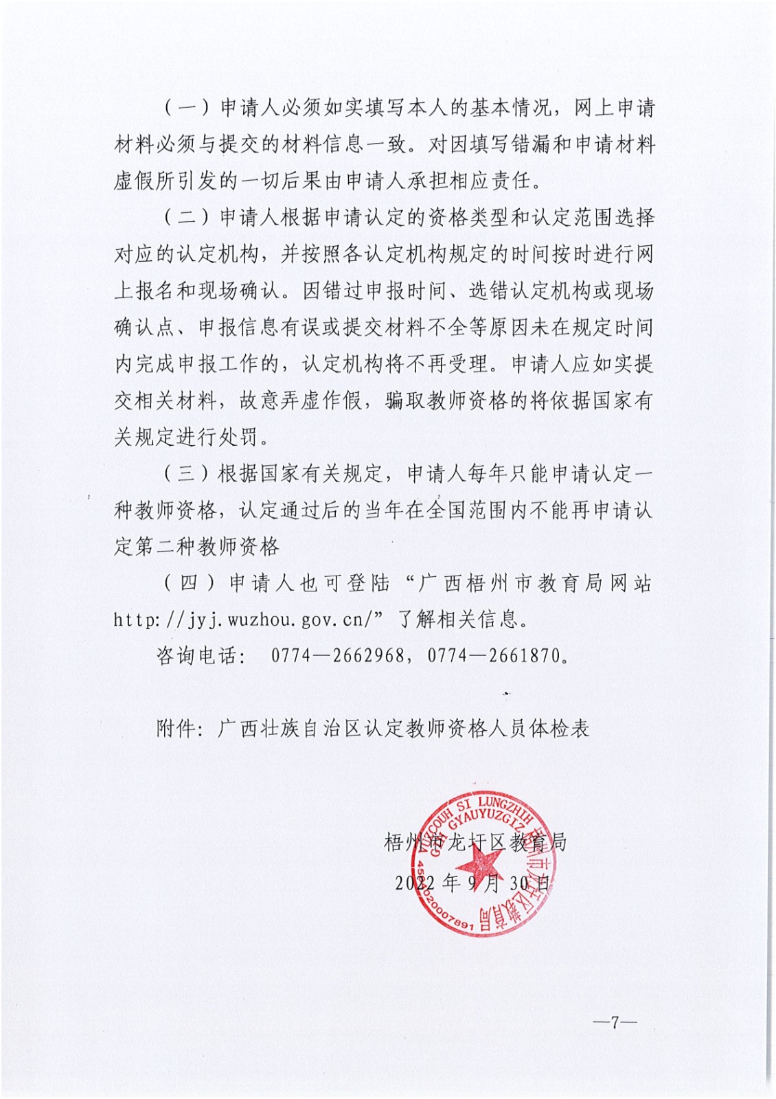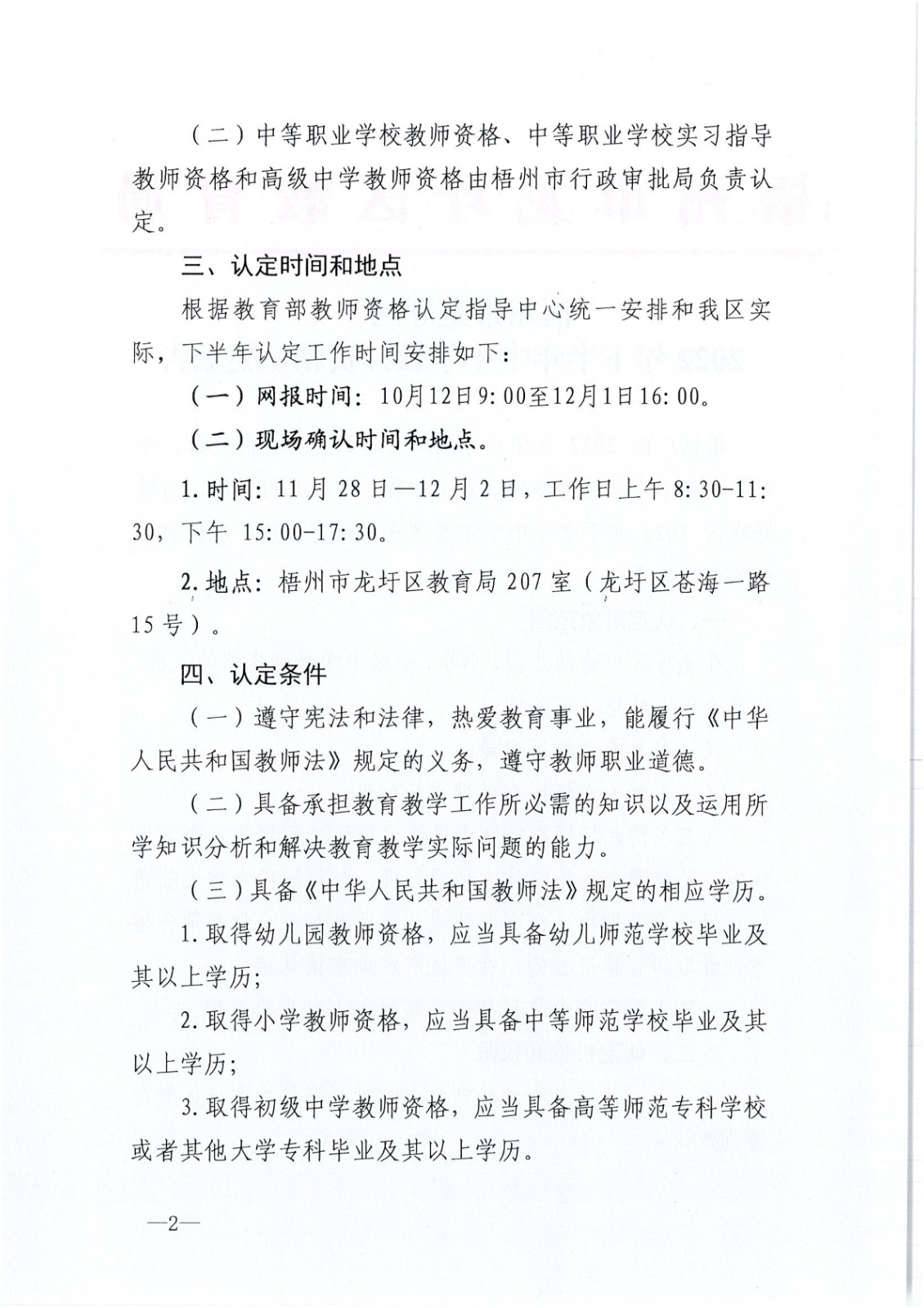 广西梧州龙圩区2022年下半年中小学教师认定公告10-12