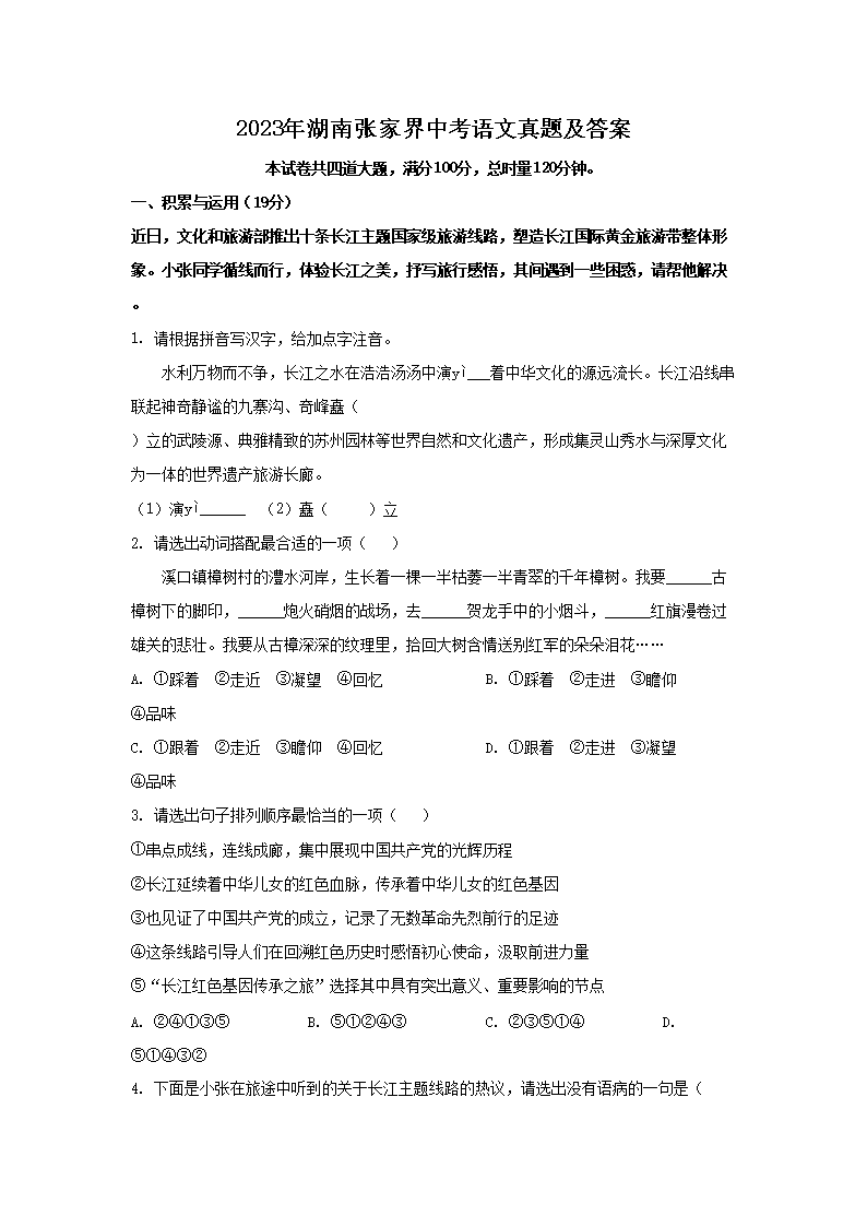【文档预览】 文档大全网整理发布2023年湖南张家界中考语文真题及答案(Word版),前五页预览如下: