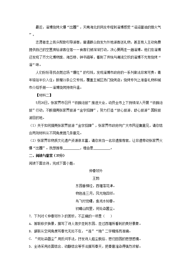 2023年湖南张家界中考语文真题及答案(Word版)07-17