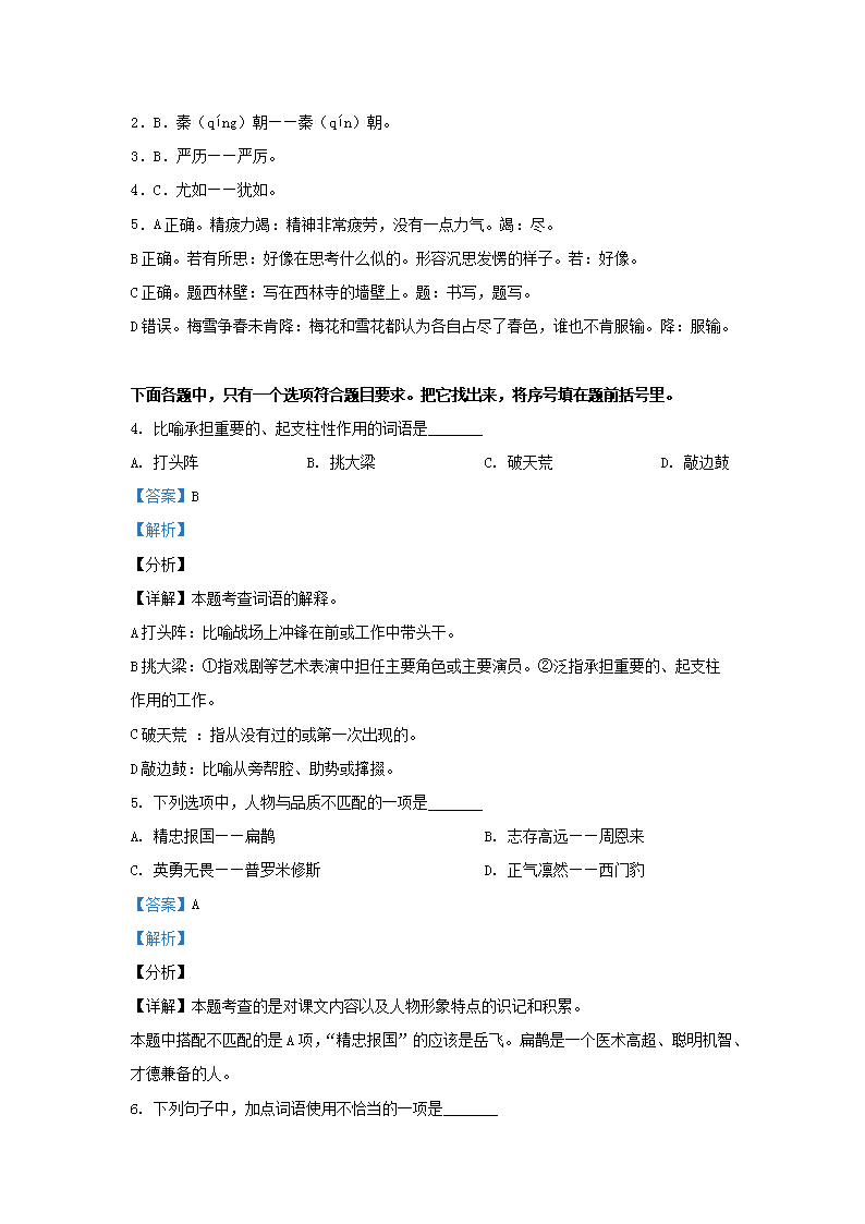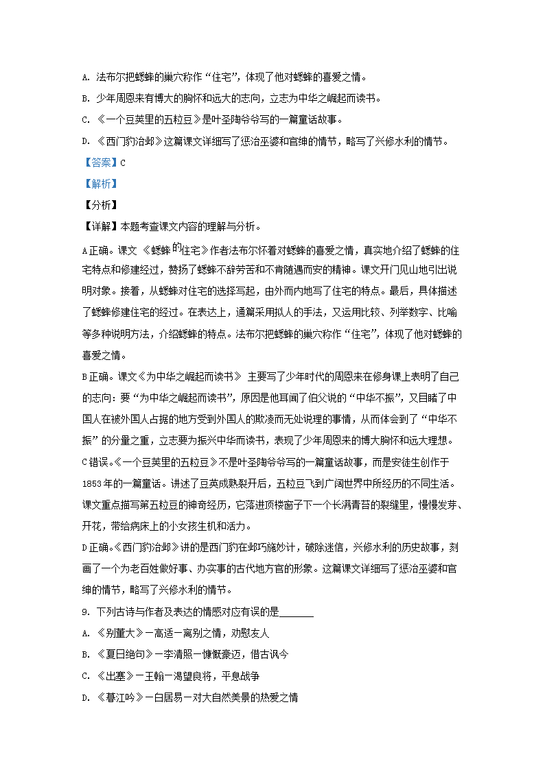 2021-2022学年江苏省苏州市相城区四年级上学期期末语文真题及答案(Word版)09-16