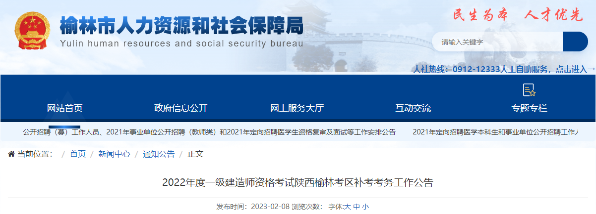 原文标题:2022年度一级建造师资格考试陕西榆林考区补考考务工作公告