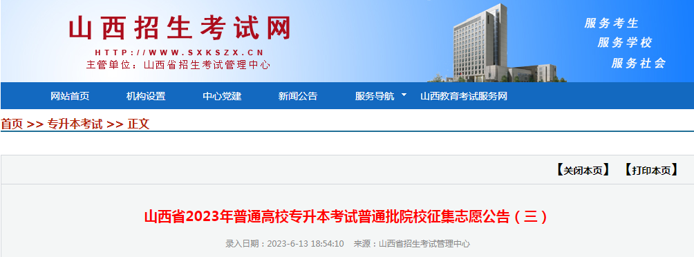 山西省2023年普通高校专升本考试普通批院校征集志愿公告(三)06-15