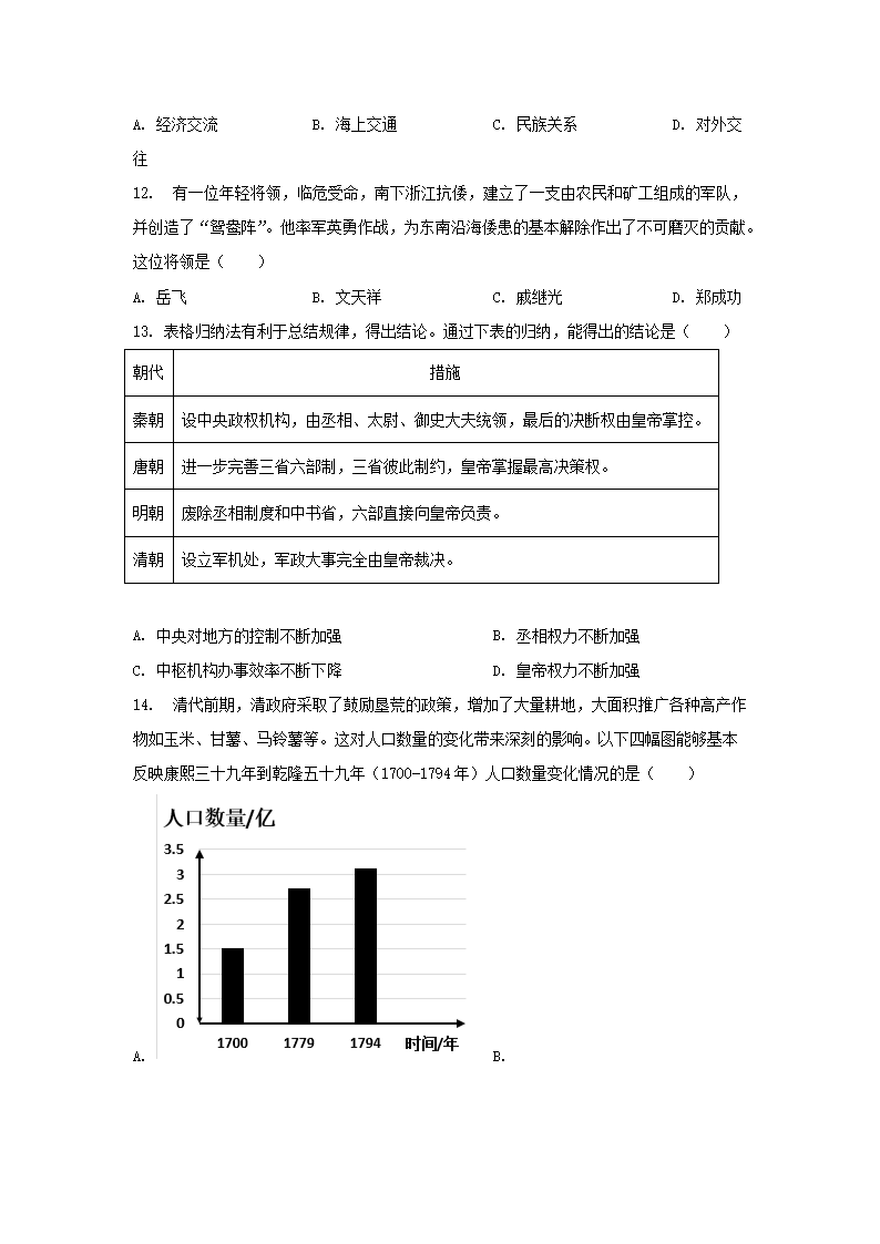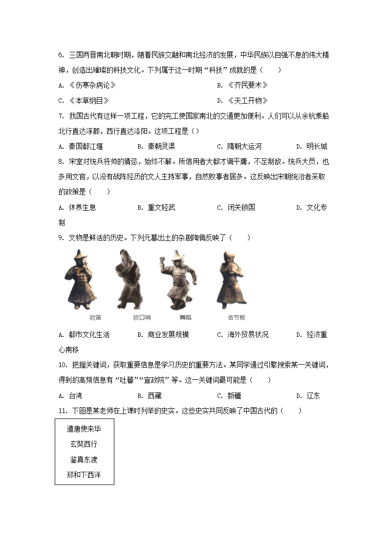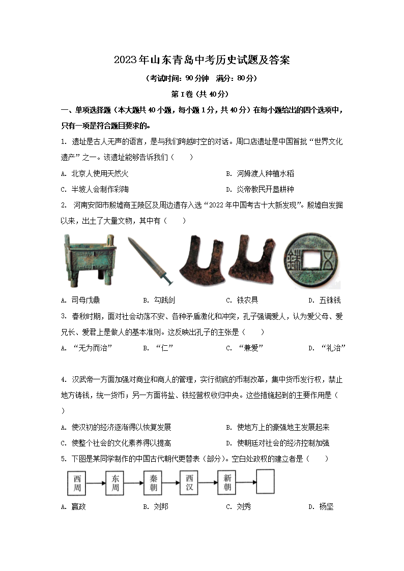 2023年山东青岛中考历史试题及答案(Word版)10-09