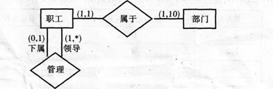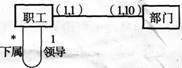 9.C【解析】考虑到领导与下属关系为一对多(即一个领导可以领导多个下属),所以关系上用“1:*”表示“领导:下属”,排除A,D。又因为一个部门中可以有不同职能的员工,排除B。所以选C。