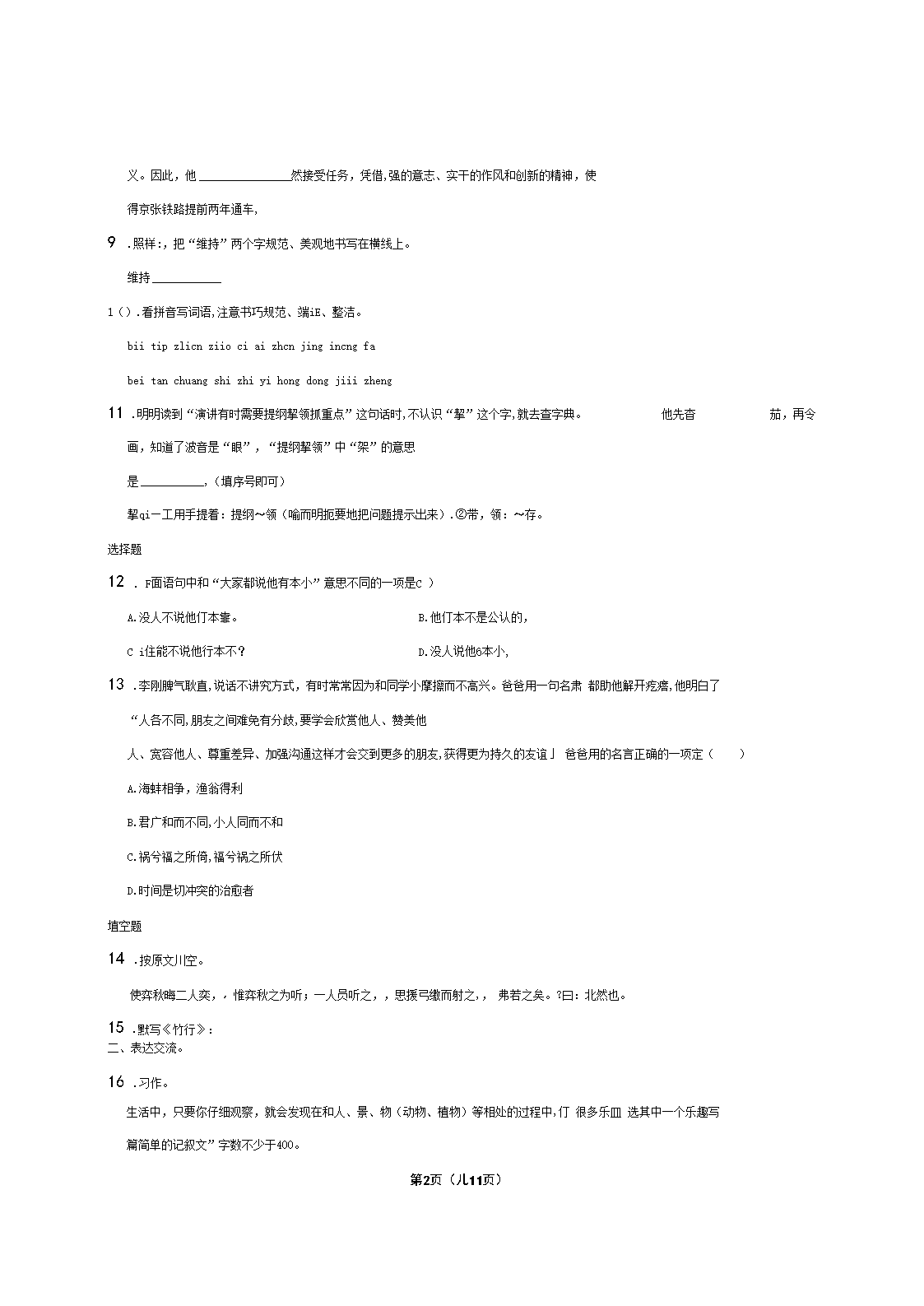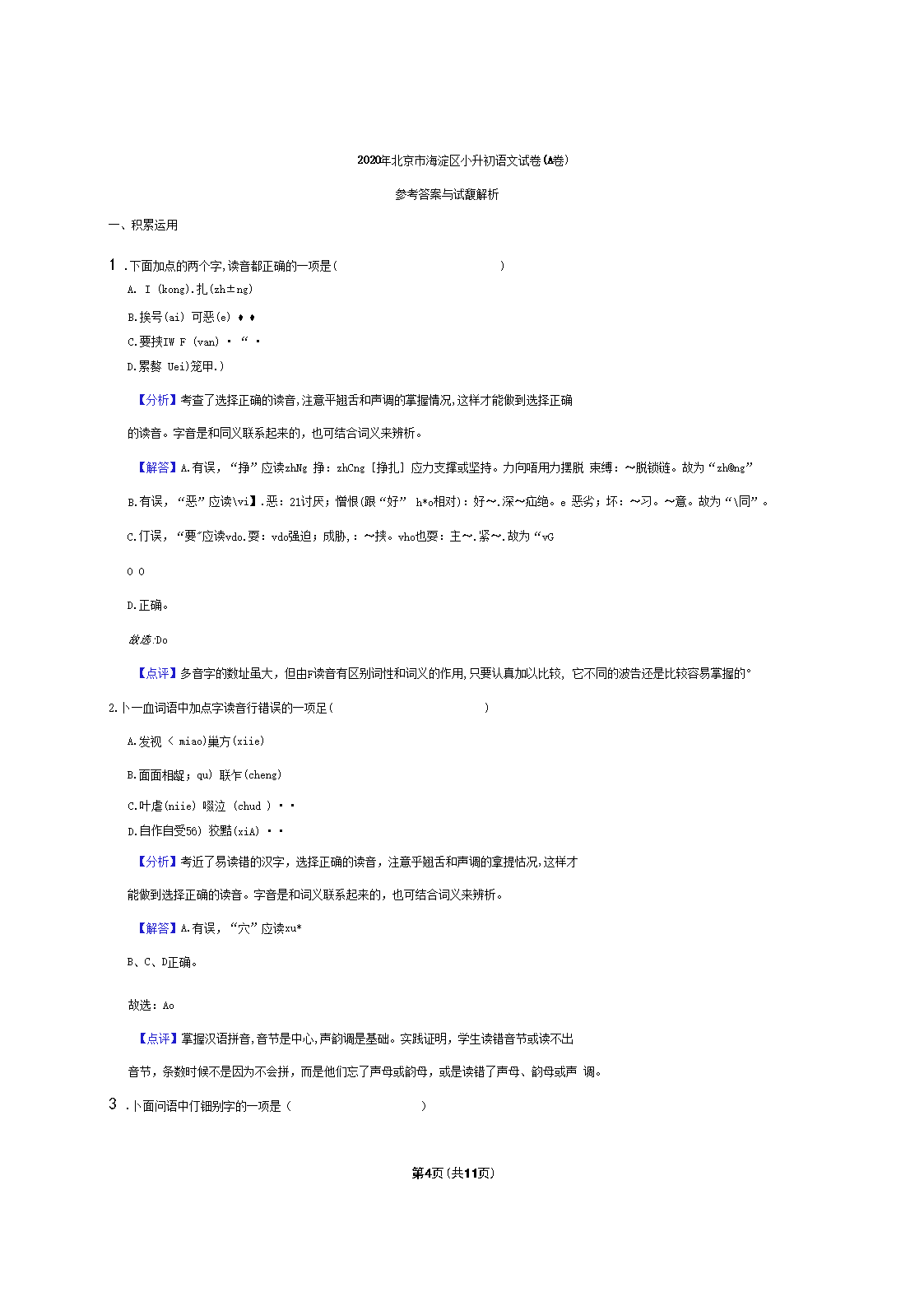 2020年北京市海淀区小升初语文真题A卷及答案解析(Word版)08-01