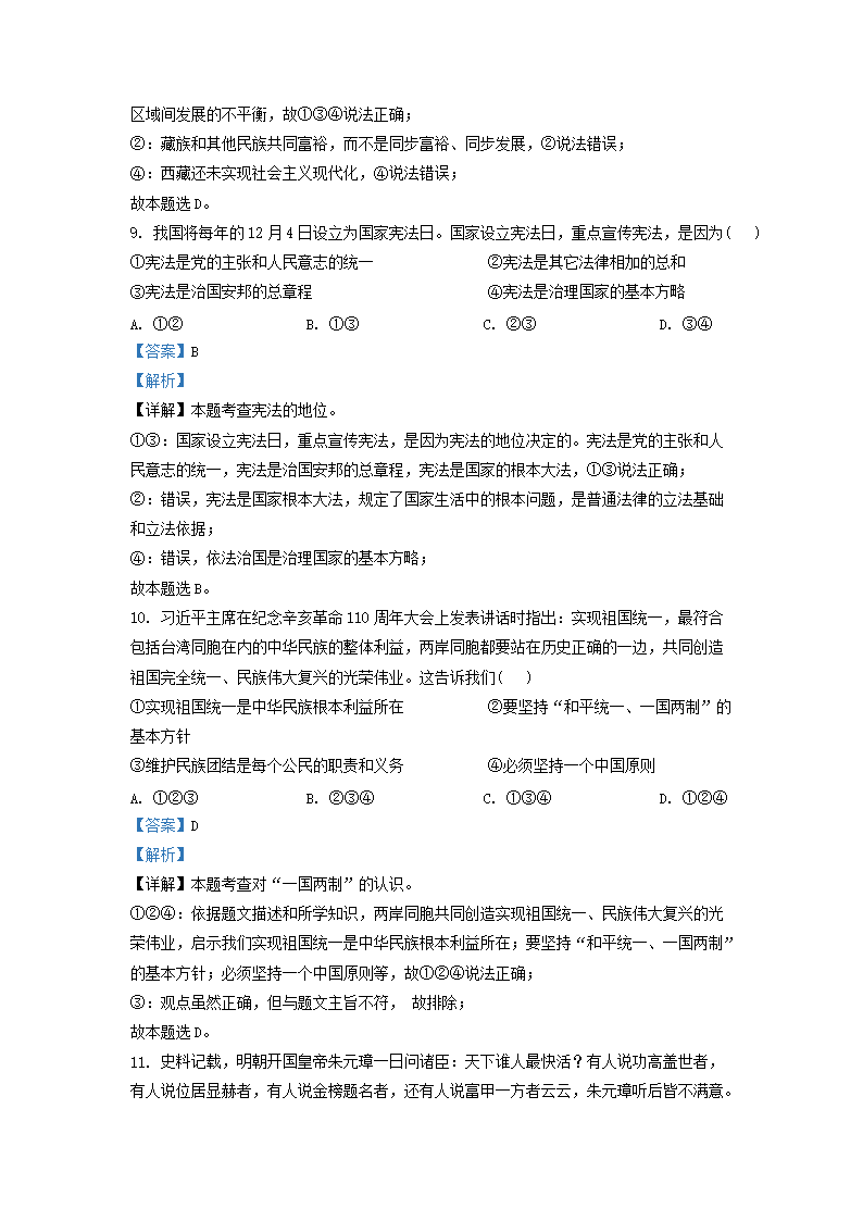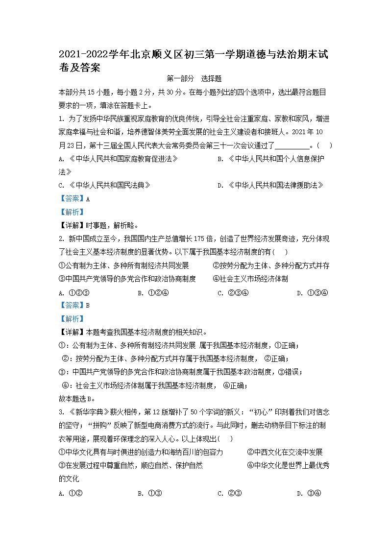 2021-2022学年北京顺义区初三第一学期道德与法治期末试卷及答案(Word版)07-11