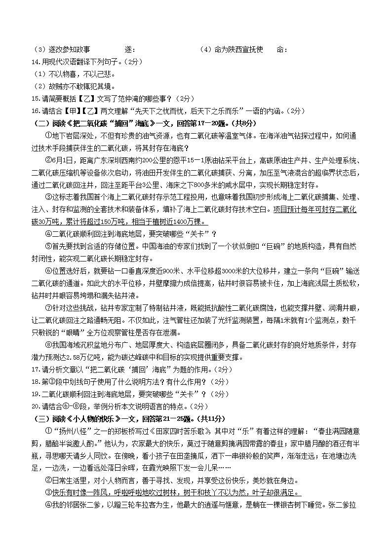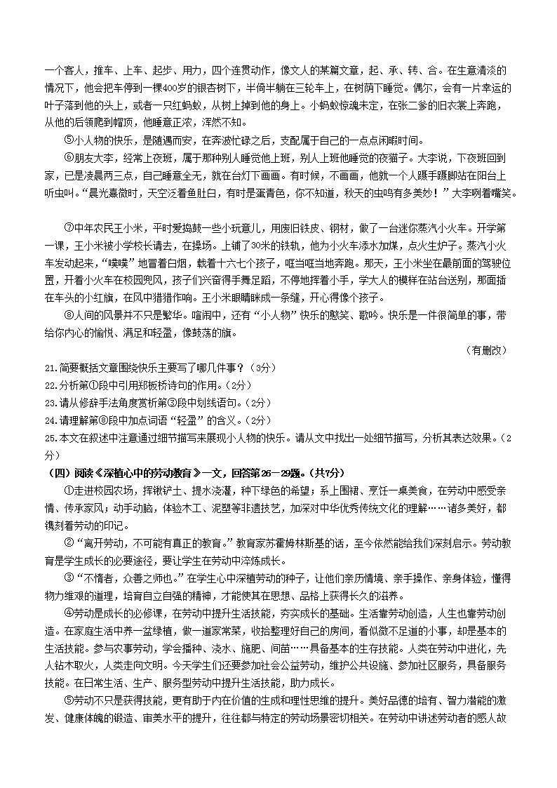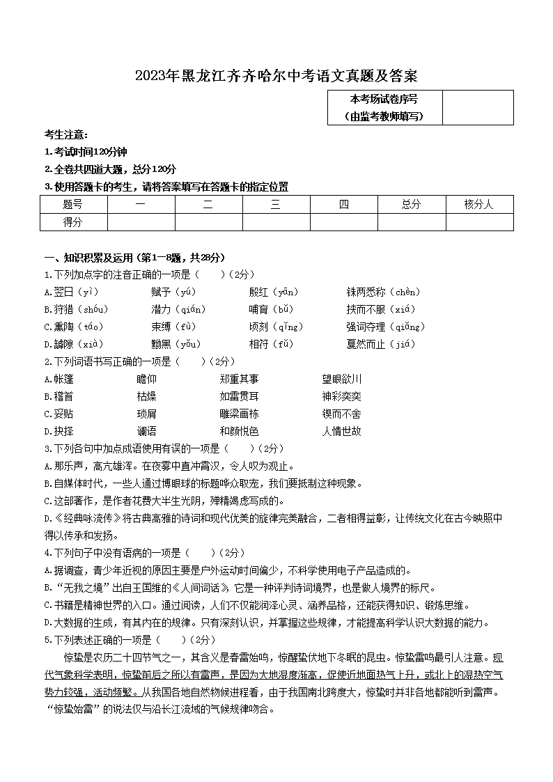 2023年黑龙江齐齐哈尔中考语文真题及答案(Word版)06-28