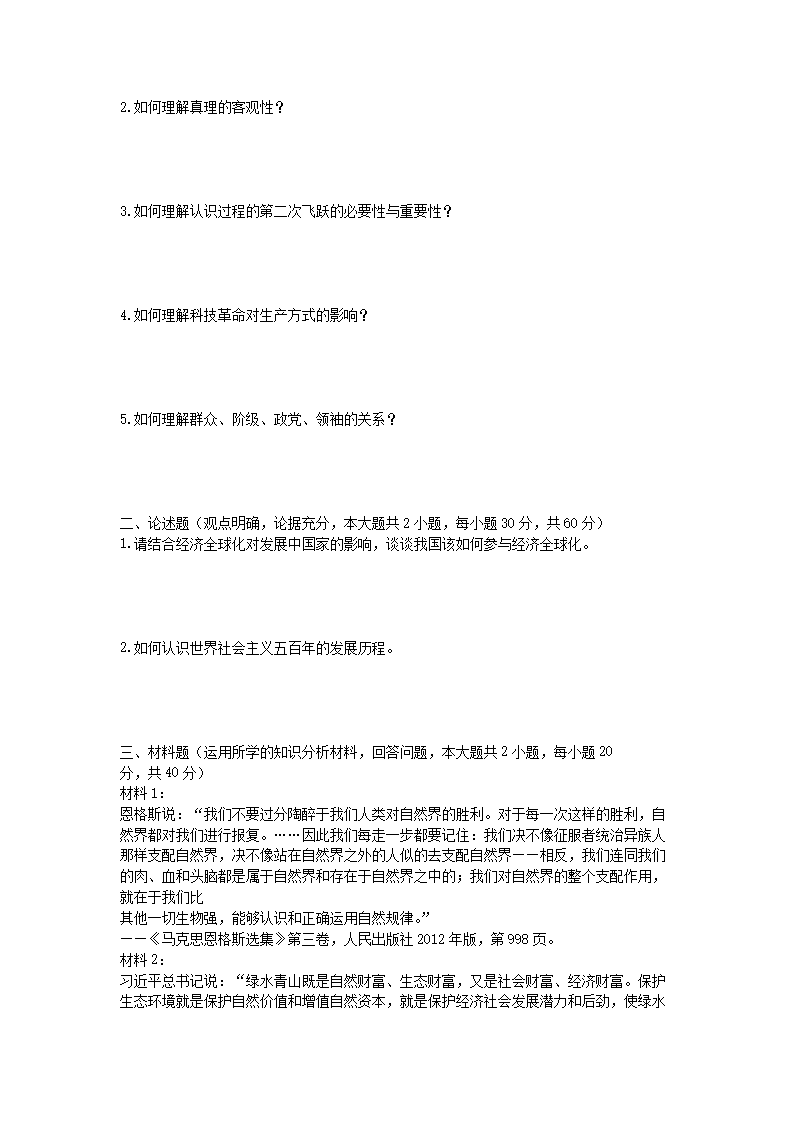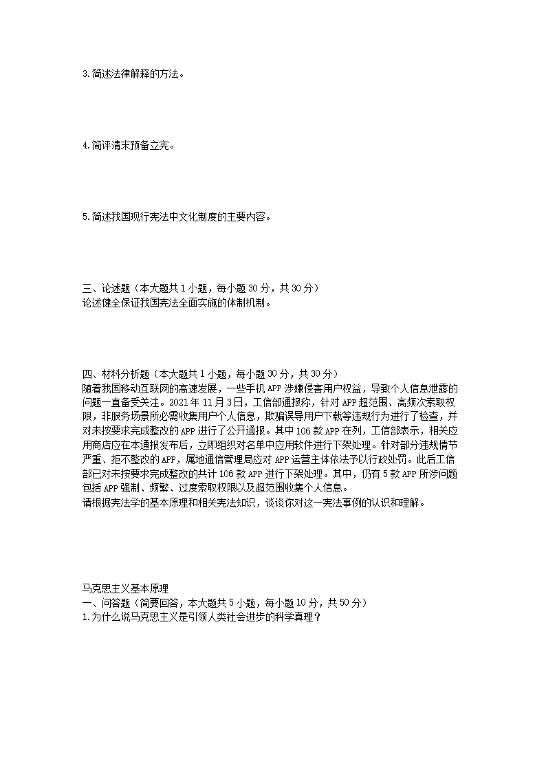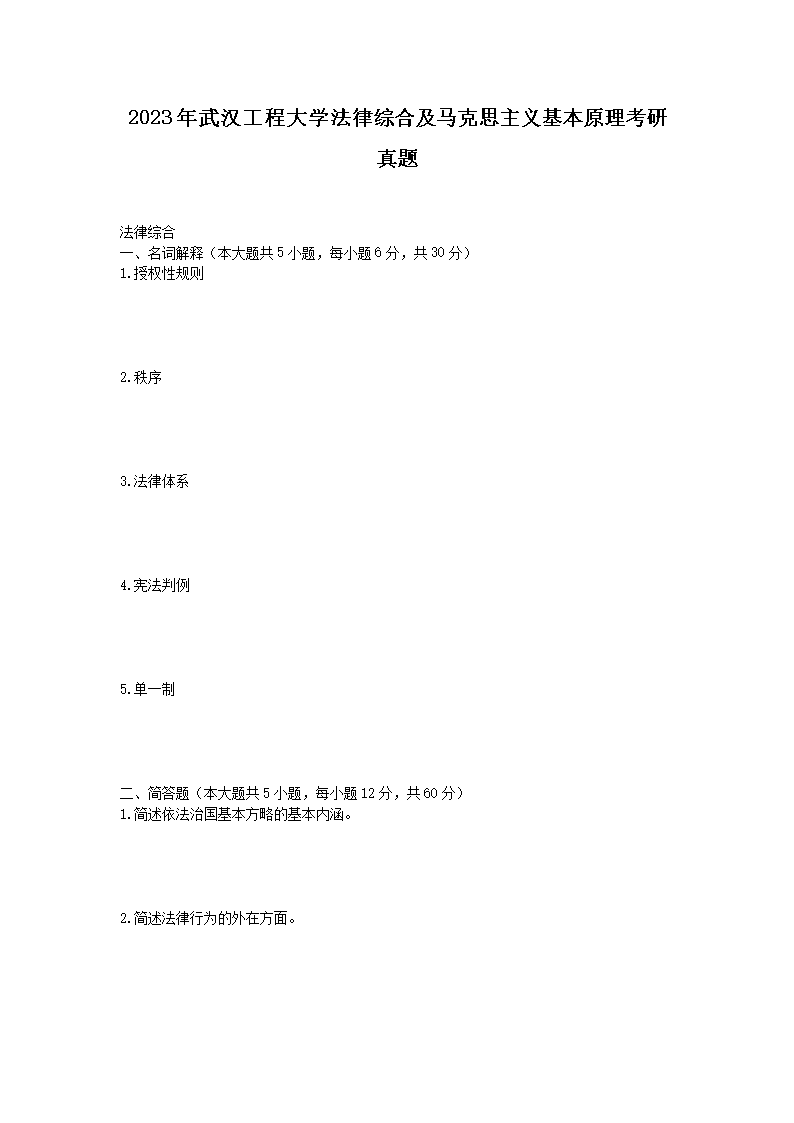 2023年武汉工程大学法律综合及马克思主义基本原理考研真题(Word版)10-12