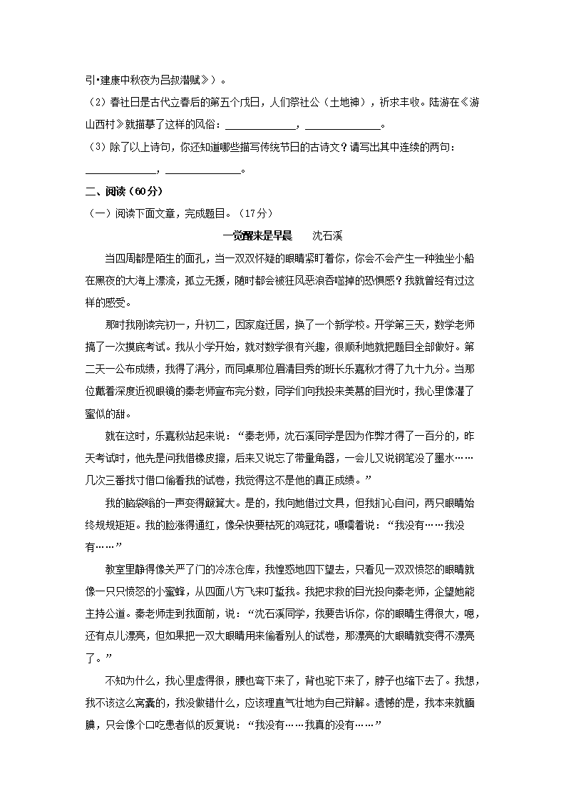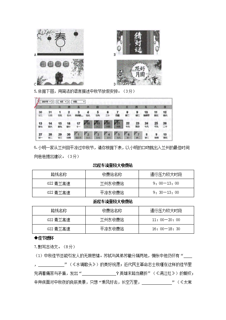 2021年甘肃省白银市中考语文真题及答案(Word版)09-22