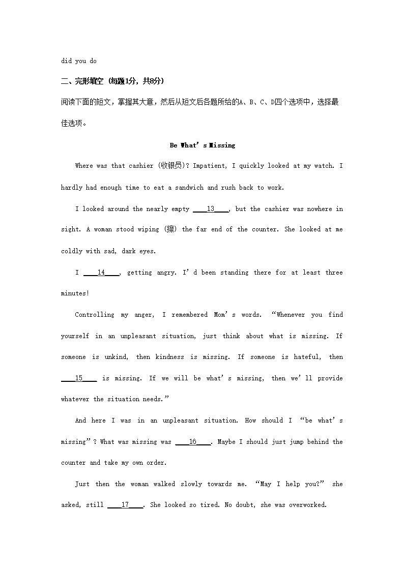 2023年北京宣武中考英语真题及答案(Word版)08-04
