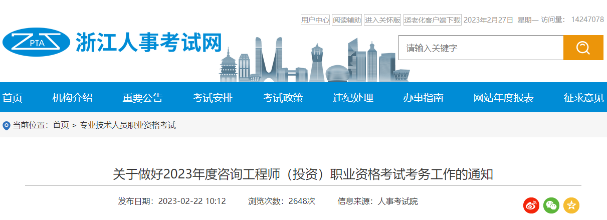 原文标题:关于做好2023年度咨询工程师(投资)职业资格考试考务工作的通知