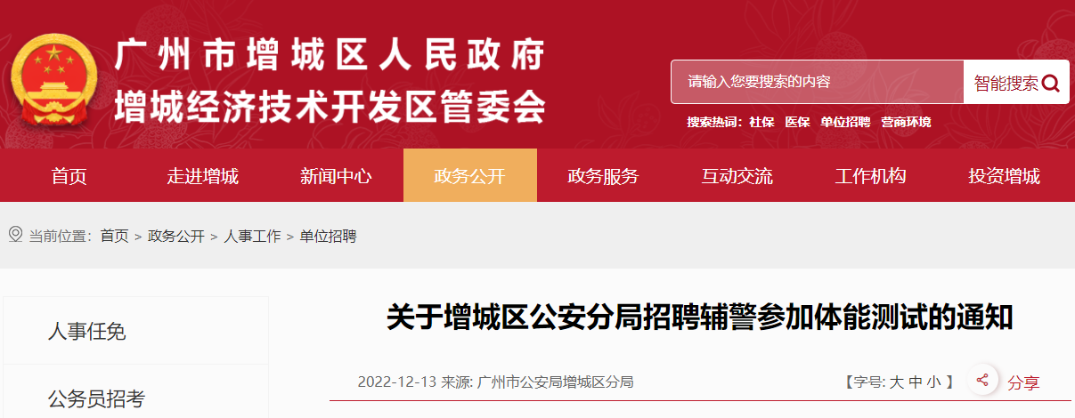 原文标题:关于增城区公安分局招聘辅警参加体能测试的通知