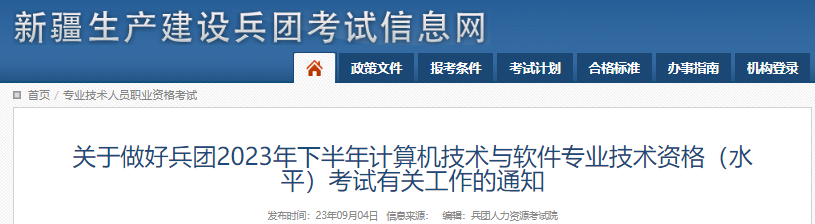 2023下半年新疆生产建设兵团软考报名时间:9月4日-27日09-05
