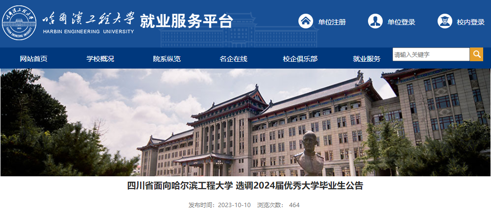 为深入贯彻党的二十大和省委十二届二次、三次全会精神,着力培养造就高素质专业化干部队伍,根据中央组织部《关于进一步加强和改进选调生工作的意见》(组通字〔2018〕17号)、省委组织部《关于进一步加强和改进选调生工作的实施意见》(川组通〔2018〕54号)要求,现就面向哈尔滨工程大学选调2024届应届优秀大学毕业生有关事项公告如下。