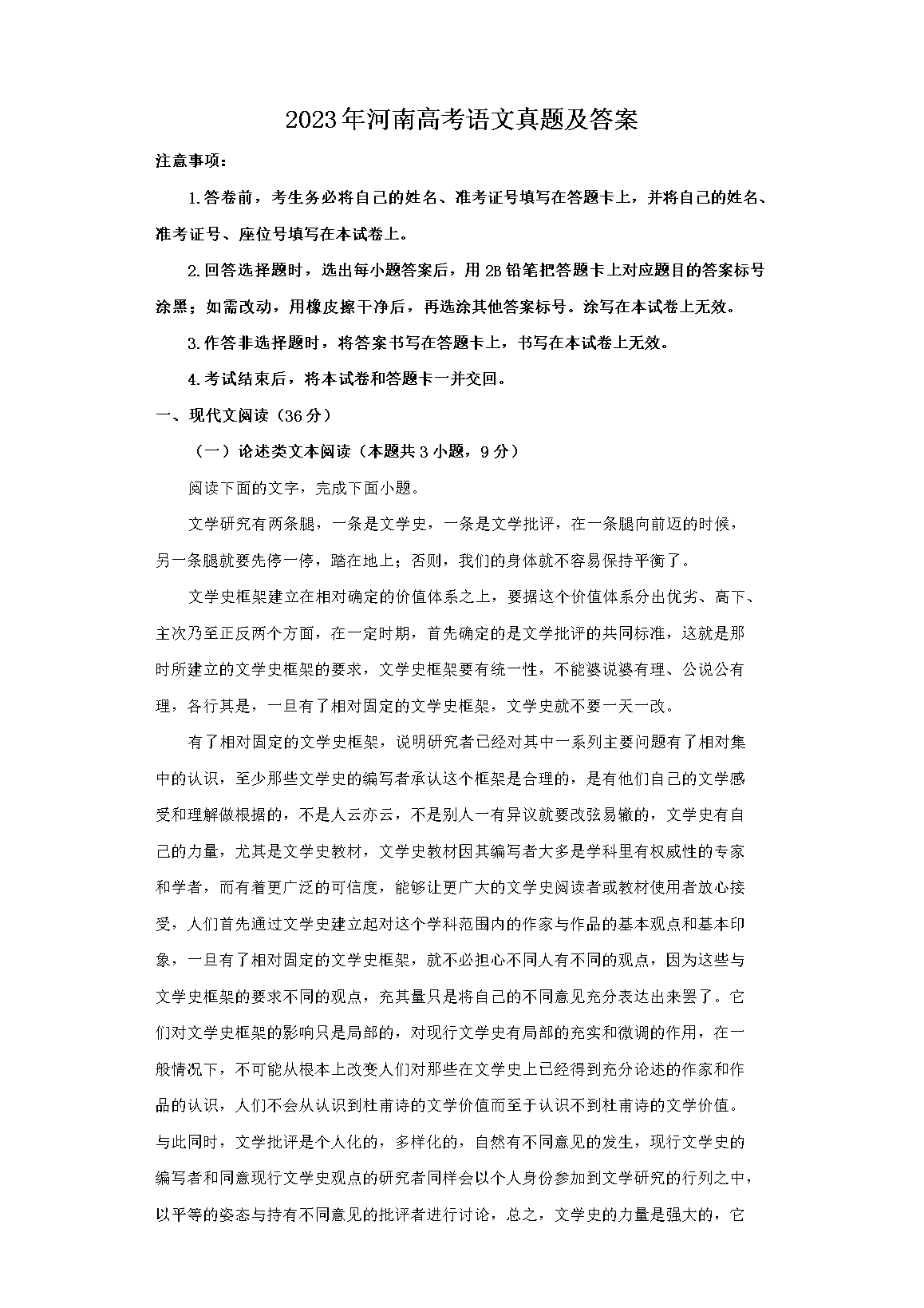 2023年河南高考语文真题及答案(Word版)06-14