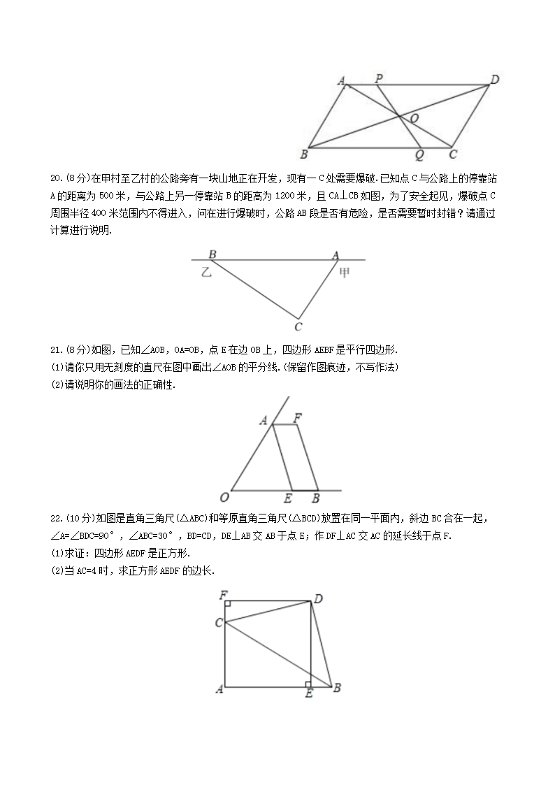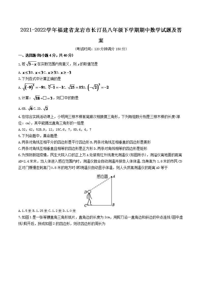 【文档预览】 文档大全网整理发布2021-2022学年福建省龙岩市长汀县八年级下学期期中数学试题及答案(Word版),前五页预览如下: