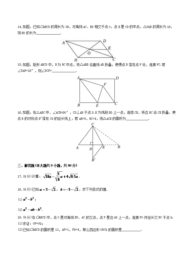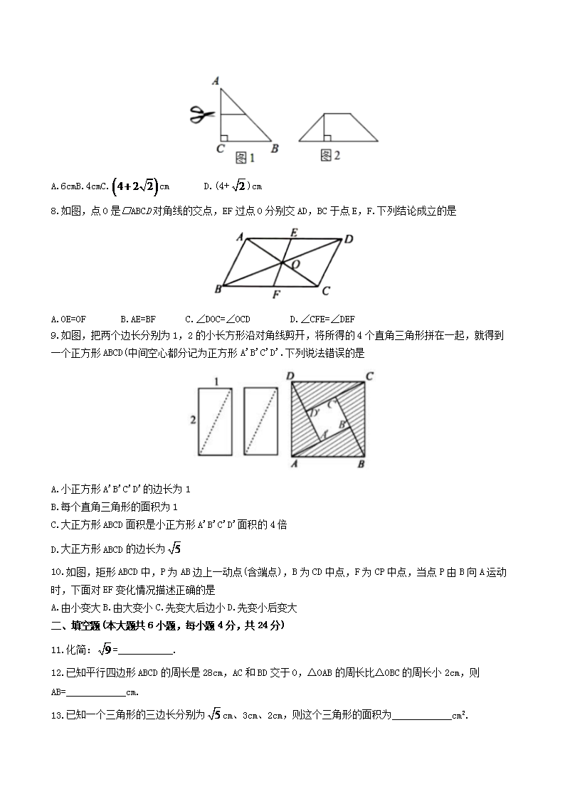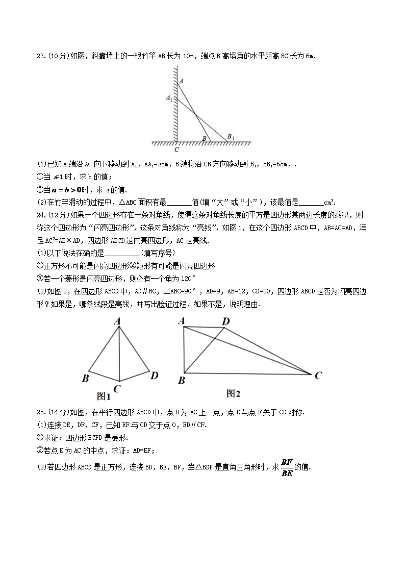 2021-2022学年福建省龙岩市长汀县八年级下学期期中数学试题及答案(Word版)10-20