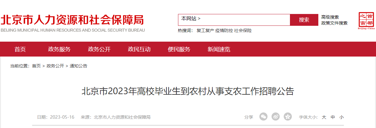 原文标题:北京市2023年高校毕业生到农村从事支农工作招聘公告