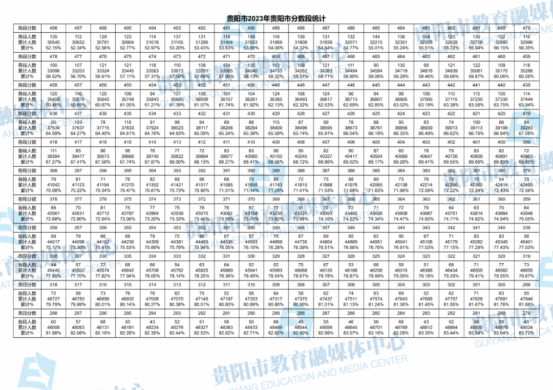 点击查看:贵州贵阳2023年中考成绩分数段统计表(完整版)