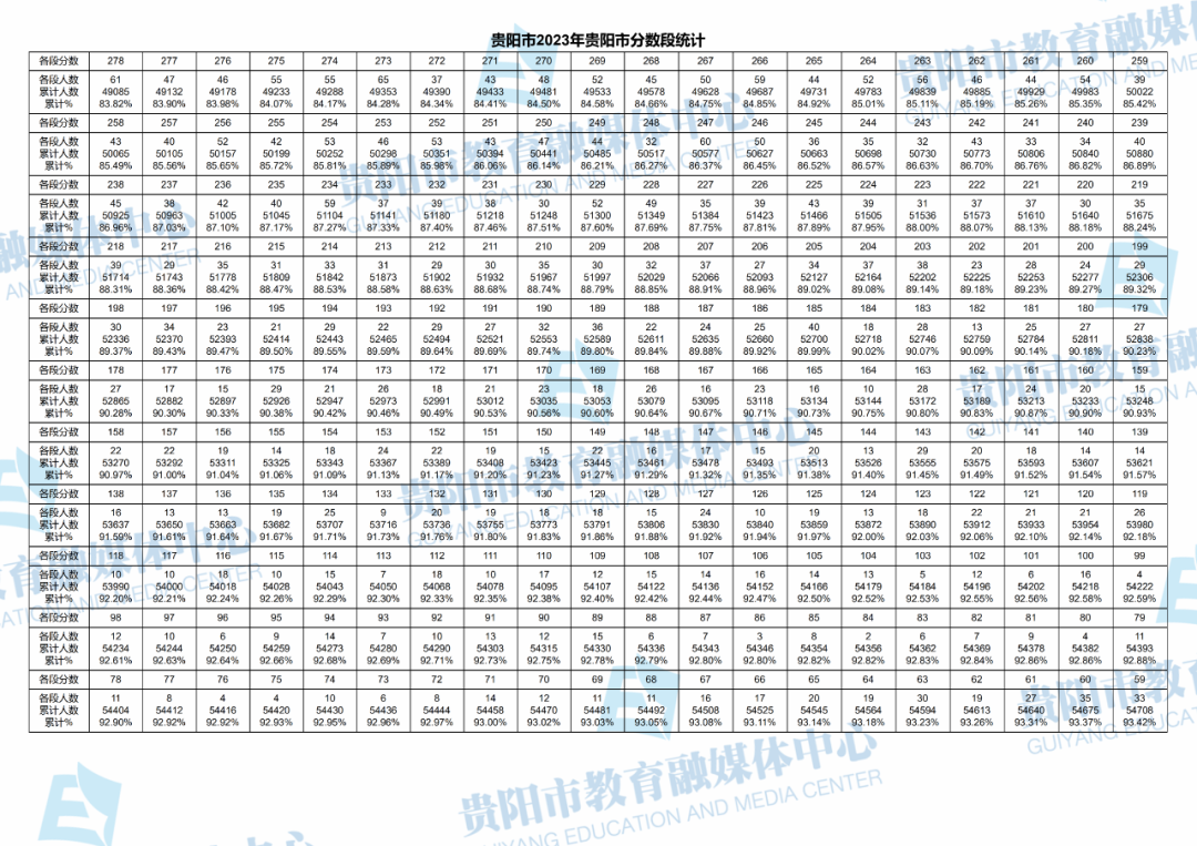 贵州贵阳2023年中考成绩分数段统计表出炉07-11