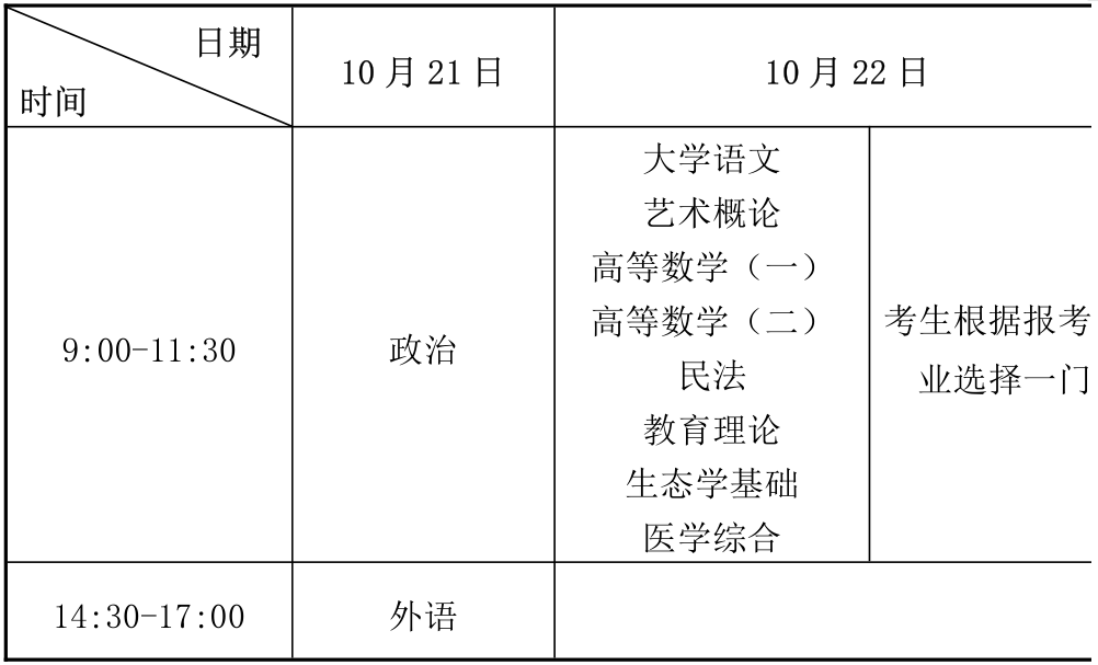 2.专科起点升本科考试时间表