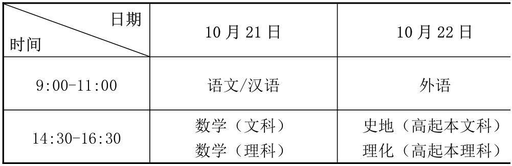 1.高中起点升本、专科考试时间表