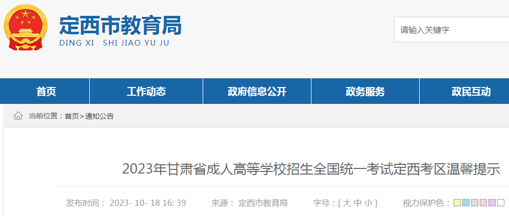 2023年成人高考甘肃定西考区温馨提示10-20