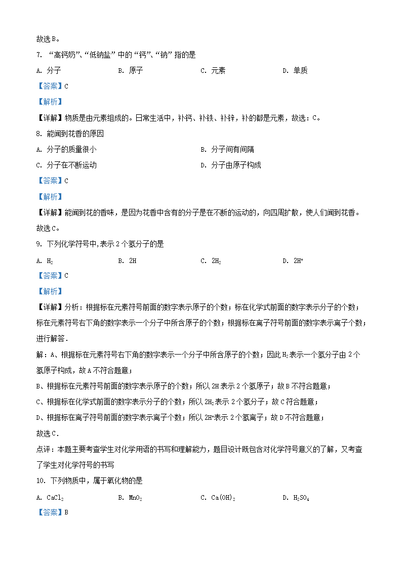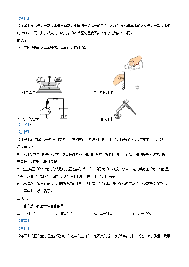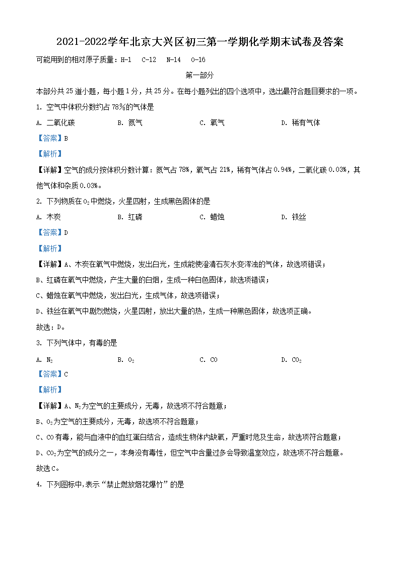 2021-2022学年北京大兴区初三第一学期化学期末试卷及答案(Word版)07-13