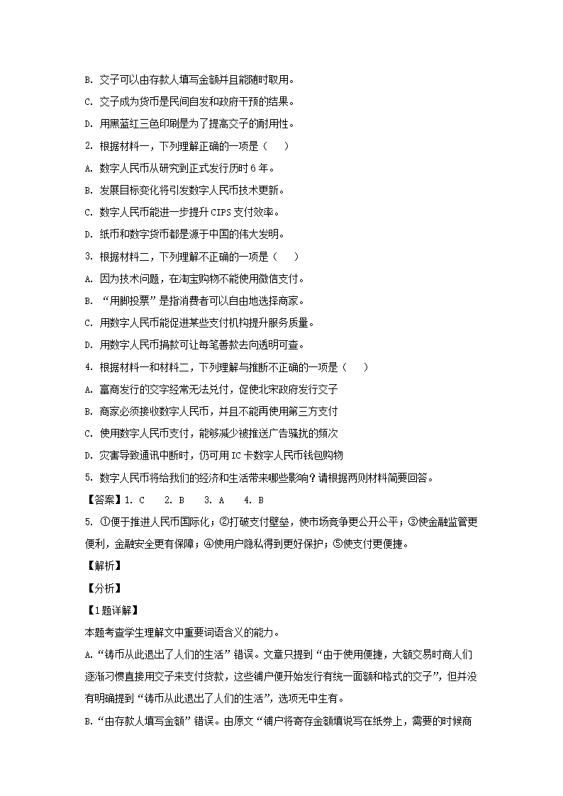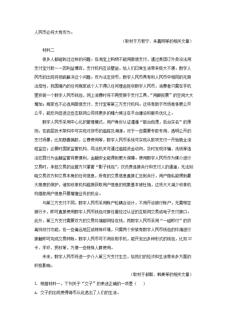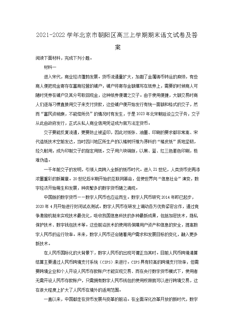 2021-2022学年北京市朝阳区高三上学期期末语文试卷及答案(Word版)09-21