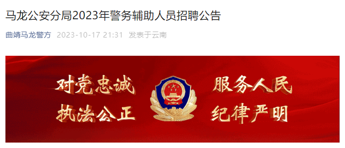 2023年云南曲靖市马龙公安分局警务辅助人员招聘公告(23人)10-20