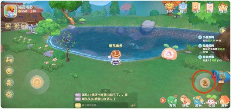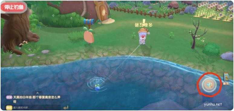 买完鱼饵后,来到可以钓鱼的地方,比较常用的钓鱼点在家园,雪山,浆果森林还有开心农场。