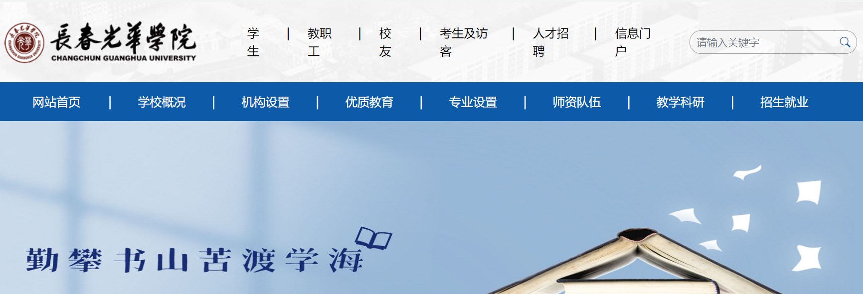 长春光华学院,2000年建校,2013年经教育部批准转设为民办普通本科高校,2015年被评为吉林省向应用型本科院校整体转型试点高校,2017年被吉林省学位委员会确定为硕士专业学位授权立项建设单位,2019年顺利通过教育部本科教学工作合格评估、被评为吉林省转型发展示范高校,2020年被评为吉林省本科人才培养改革示范高校。