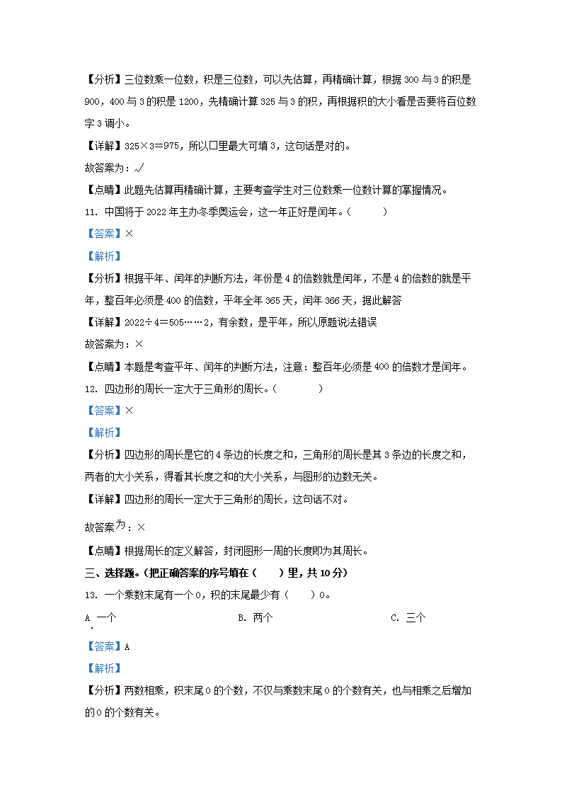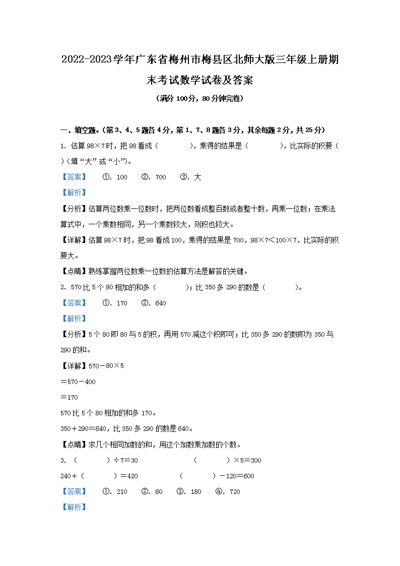 2022-2023学年广东省梅州市梅县区北师大版三年级上册期末考试数学试卷及答案(Word版)08-11