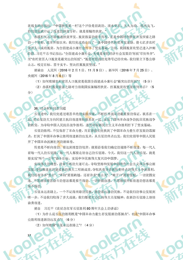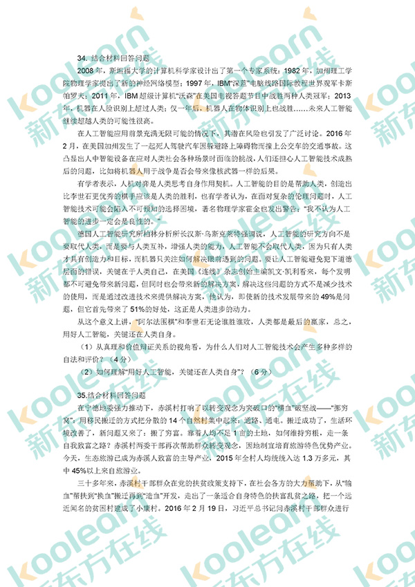 三、分析题:34~38小题,每小题10分,共50分。要求结合所学知识分析材料回答问题。将答案写在答题卡指定位置的边框区域内。