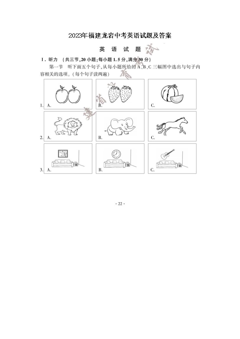 【文档预览】 文档大全网整理发布2023年福建龙岩中考英语试题及答案(图片版),前五页预览如下: