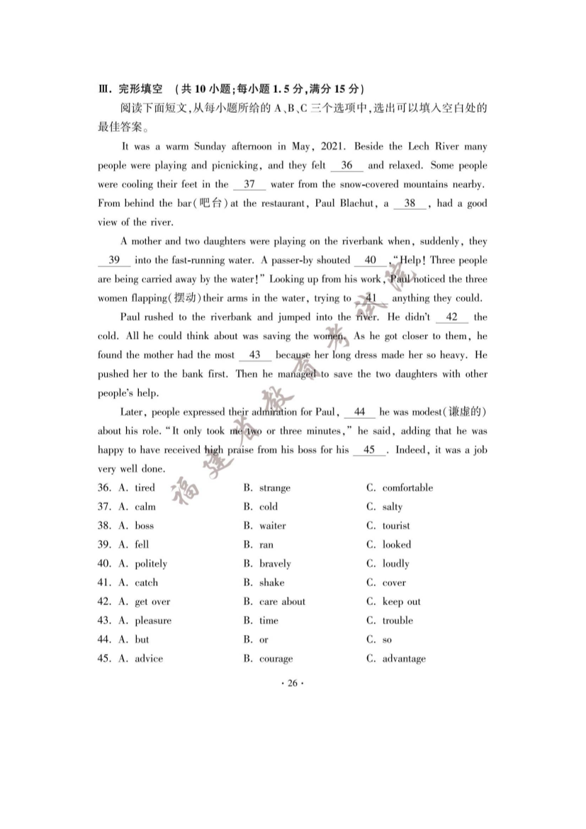 2023年福建龙岩中考英语试题及答案(图片版)06-27