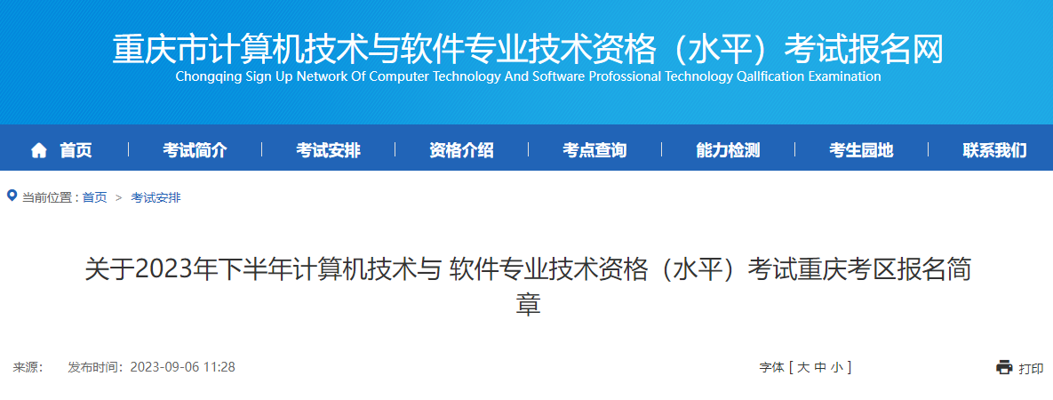 2023下半年重庆软考报名时间定于2023年9月11日09:00--9月20日17:00期间!