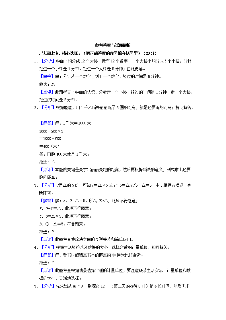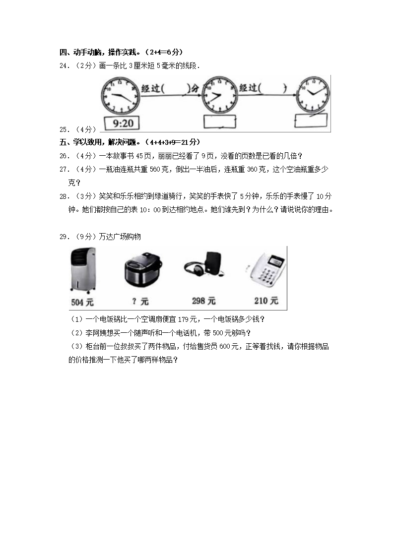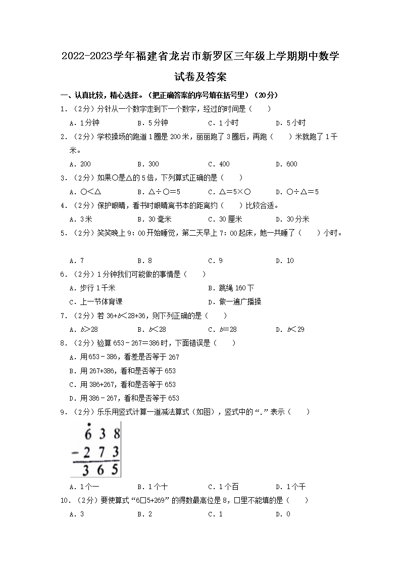 2022-2023学年福建省龙岩市新罗区三年级上学期期中数学试卷及答案(Word版)09-14