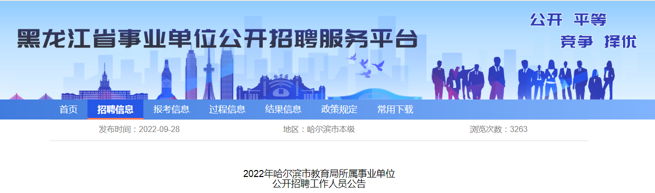 原文标题:2022年哈尔滨市教育局所属事业单位公开招聘工作人员公告