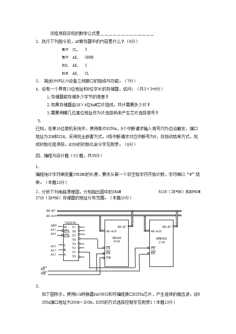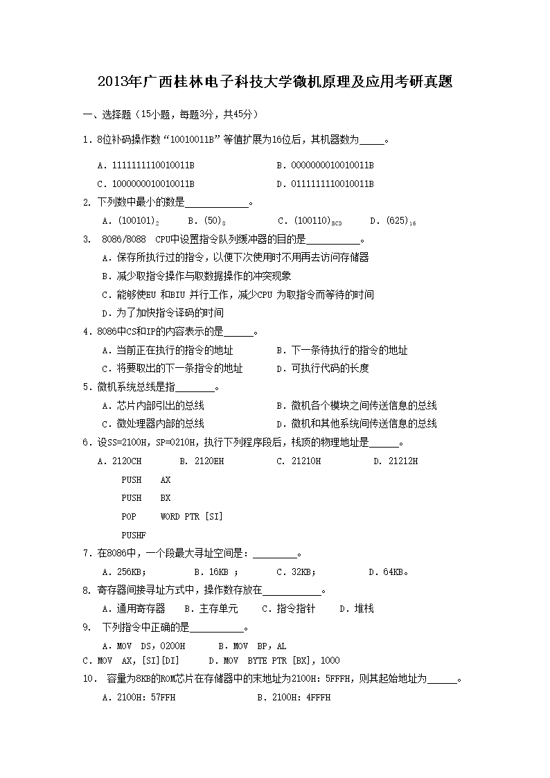 2013年广西桂林电子科技大学微机原理及应用考研真题(Word版)05-31