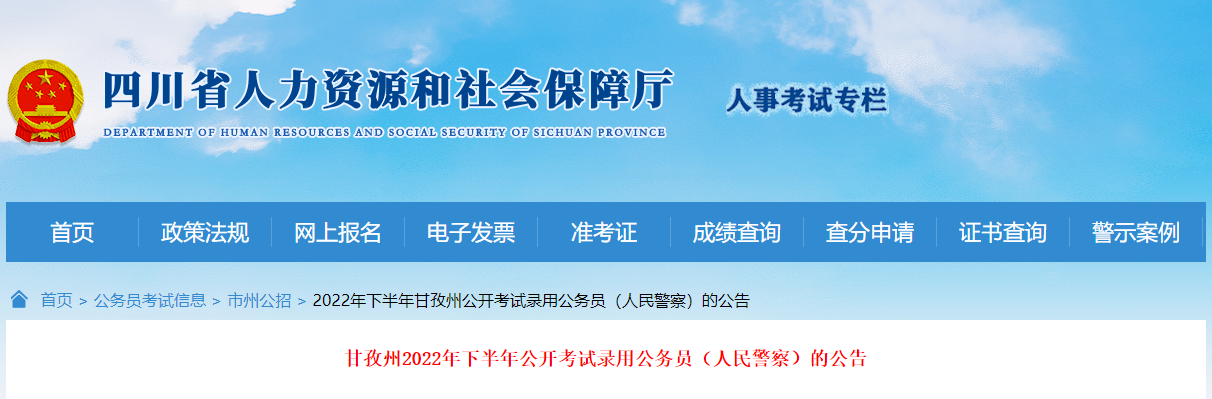 原文标题:关于甘孜州2022年下半年公开考试录用公务员(人民警察)的公告